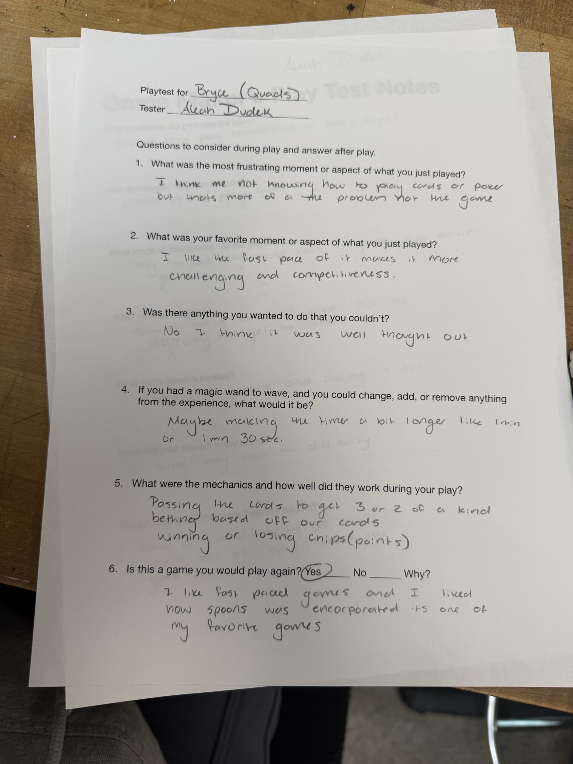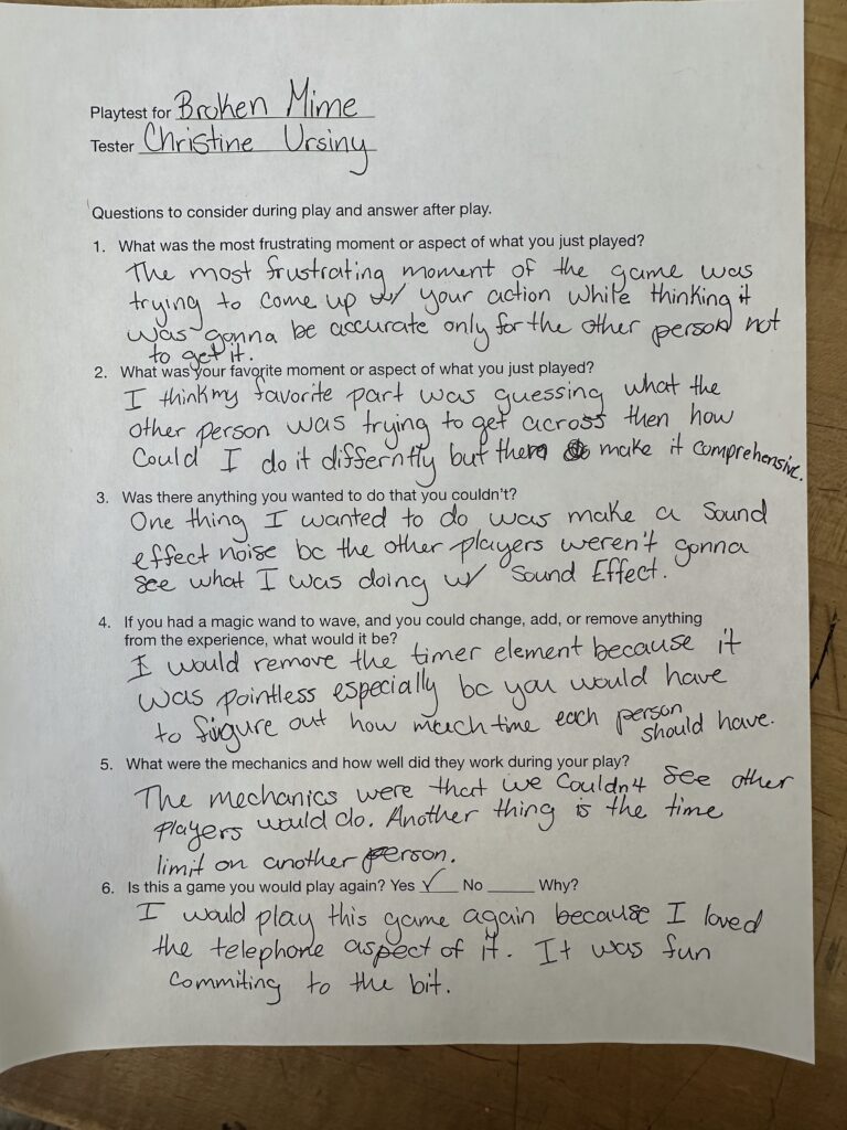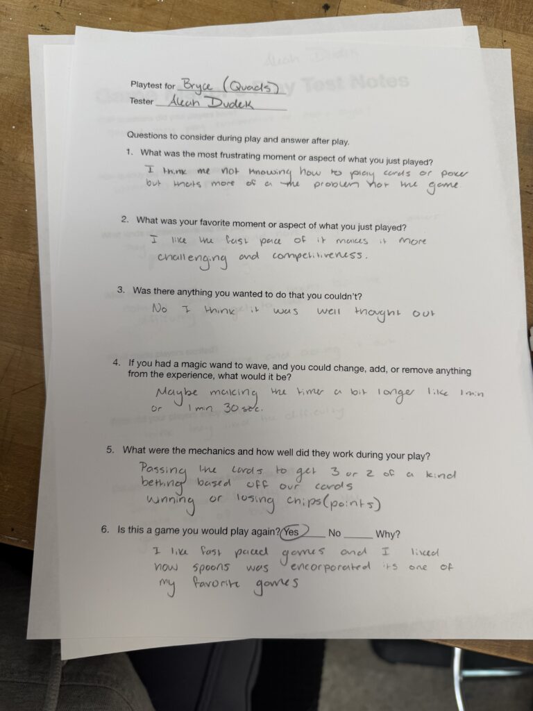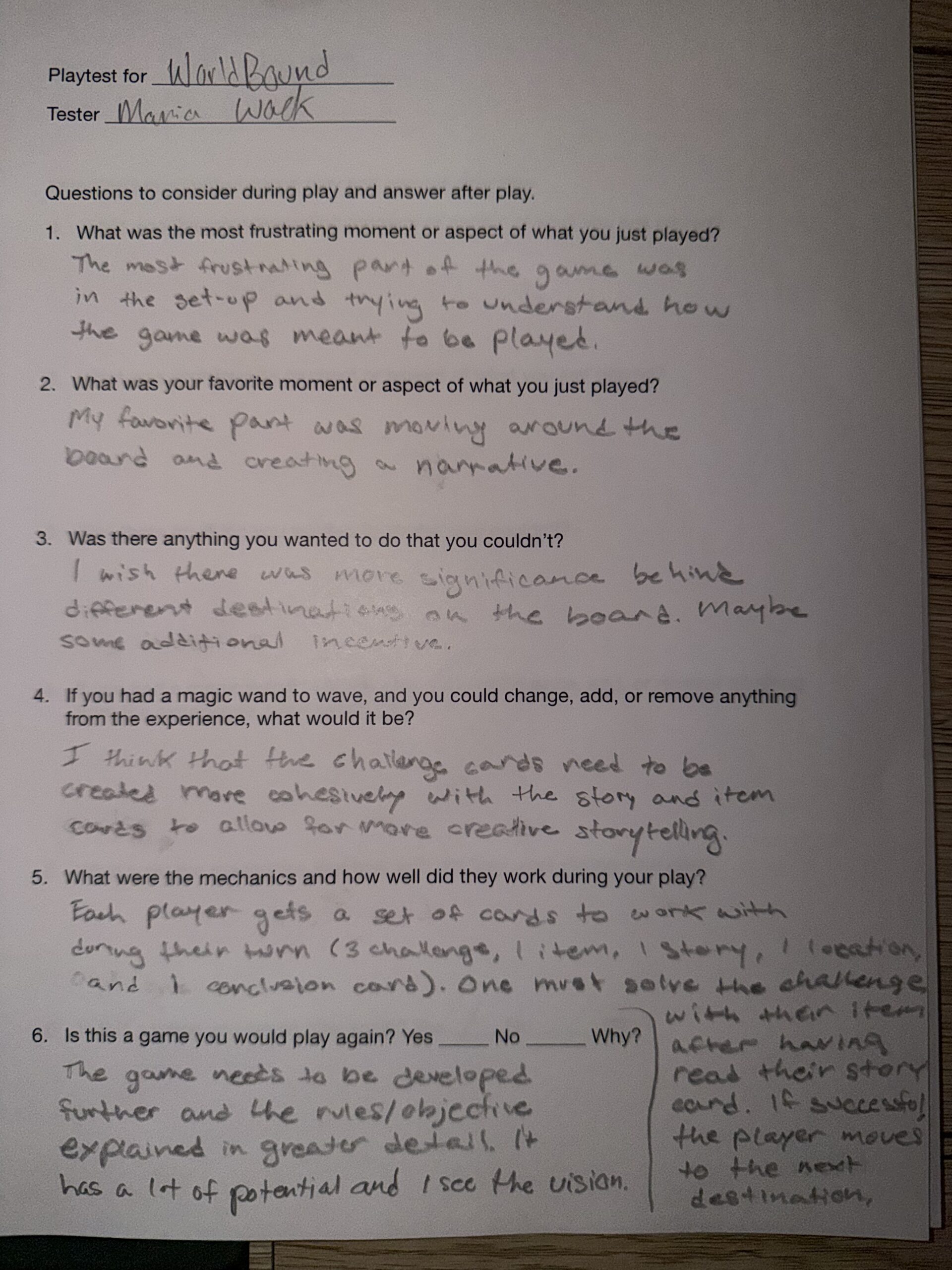 Honestly, this was the first game I’ve played in this class where there wasn’t anything I wished I could do differently. The game felt complete in its mechanics and objectives. I just wish I had been a little faster in picking up the rules, which would have allowed me to dive into strategic planning sooner.