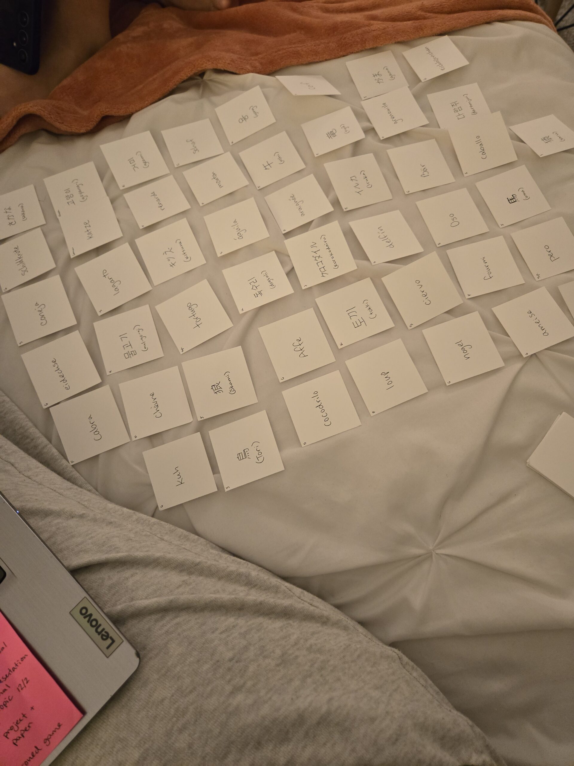 I play tested this in class and with my sister and it went similarly both times – i think it flows nicely but could be a lot of fun with different versions – i tried several different alternative endings with my sister which was informative on how i want to “finalize” it – both times people wanted pronunciations for all words which I definitely will do.