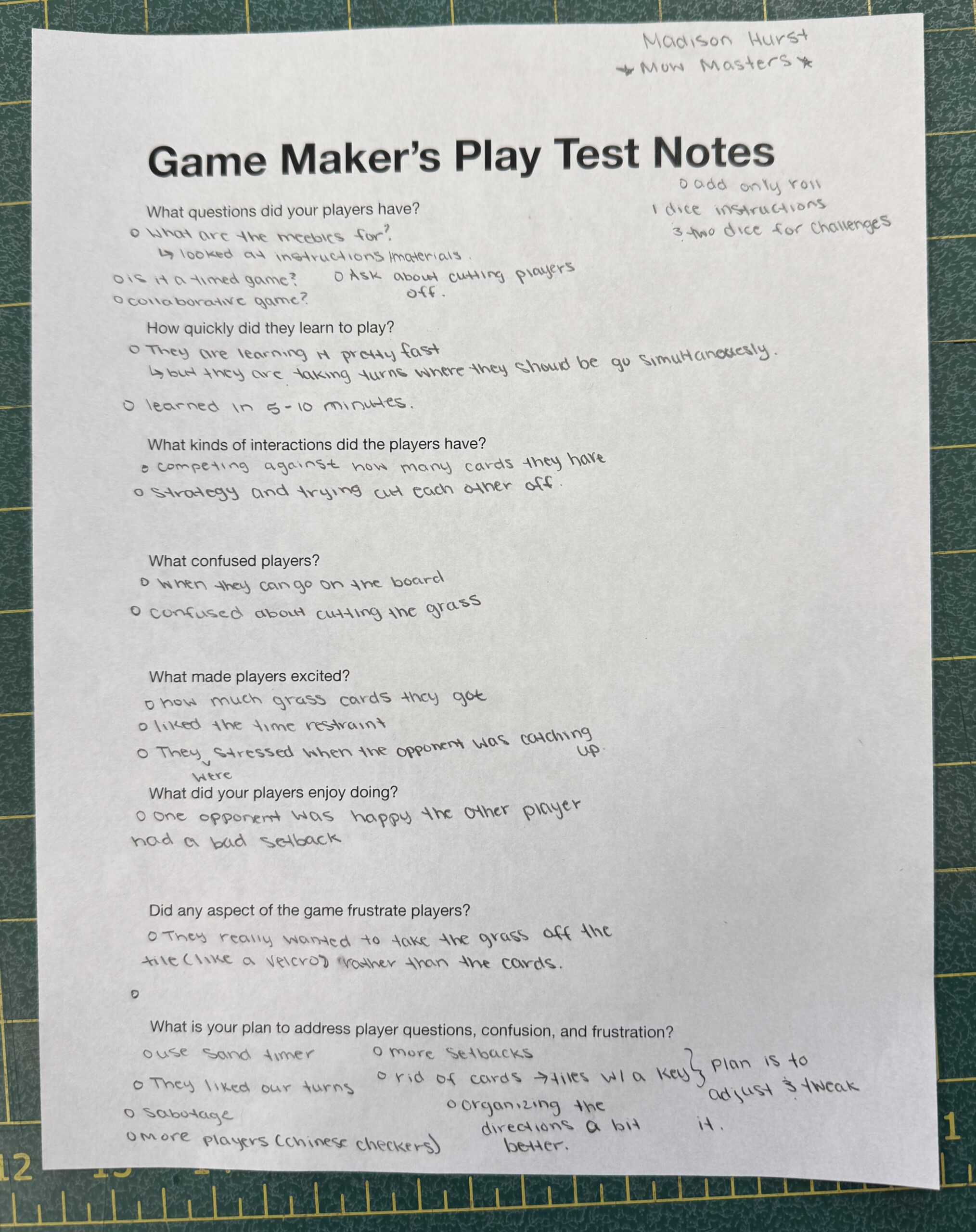 - Establish one clear win condition (ex., first to 5 tokens?).