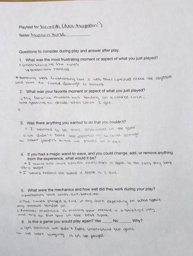 Posted on October 2, 2025October 7, 2025 by mahst125Play test Critique for Axa-Mageddon (Meredith) Fester (Sarah J) Madison Hurst