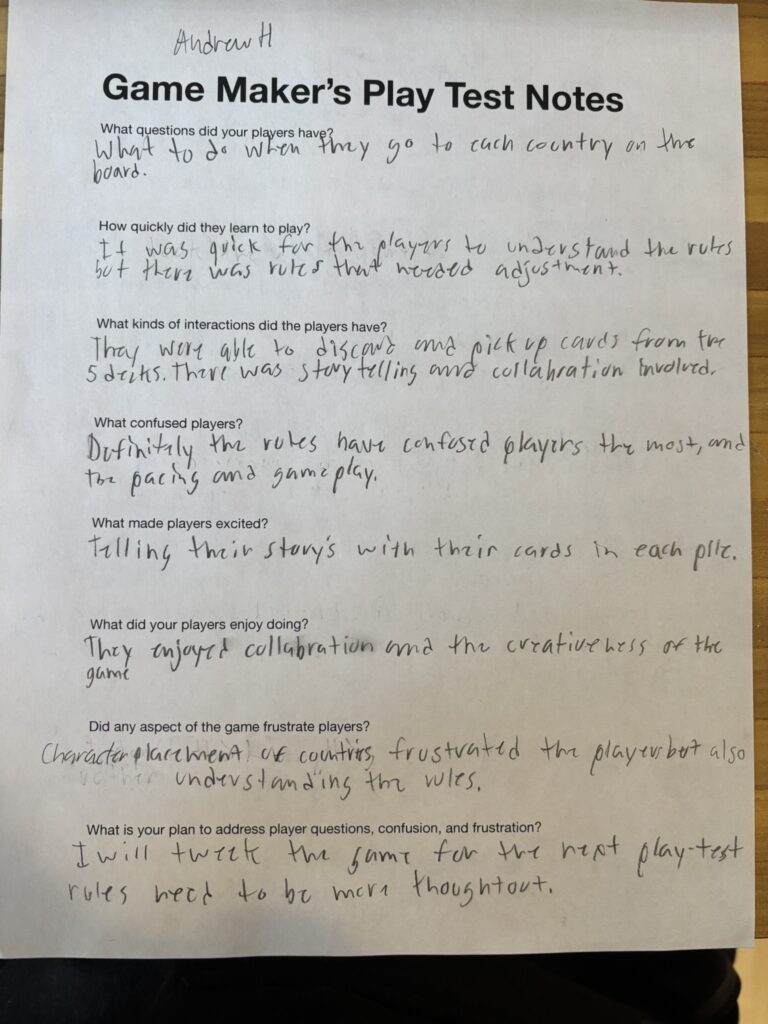 Posted on October 2, 2025October 7, 2025 by aehst104@mail.rmu.eduAndrew H Playtest/Game Maker Questions Worksheets