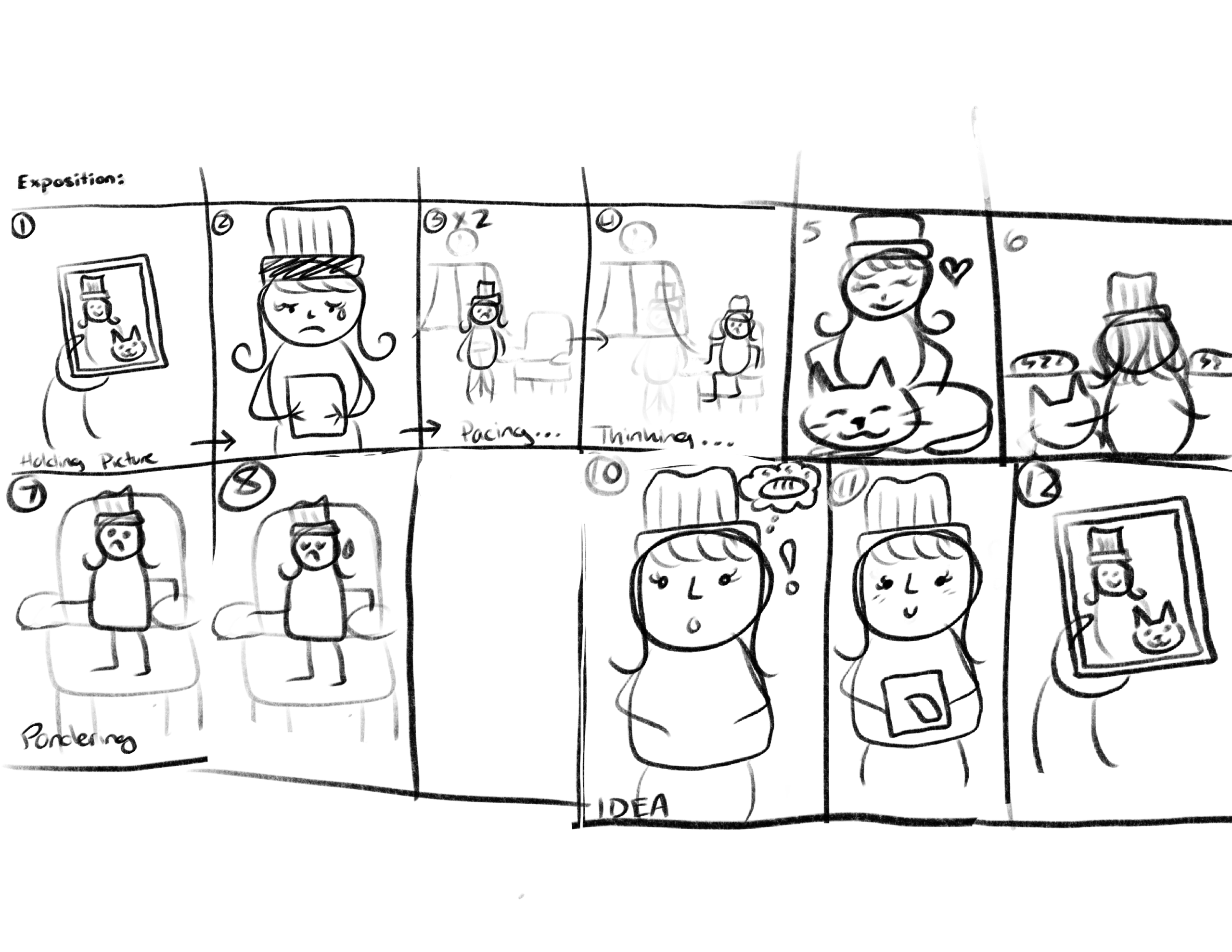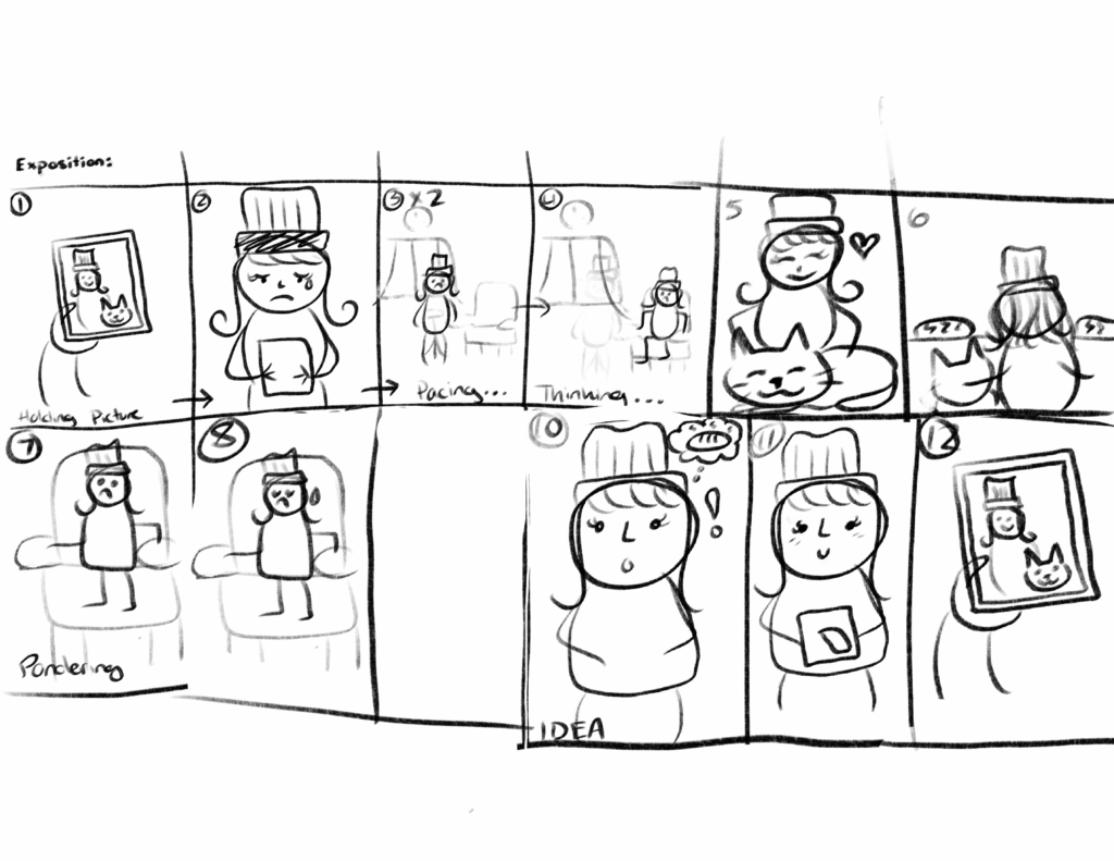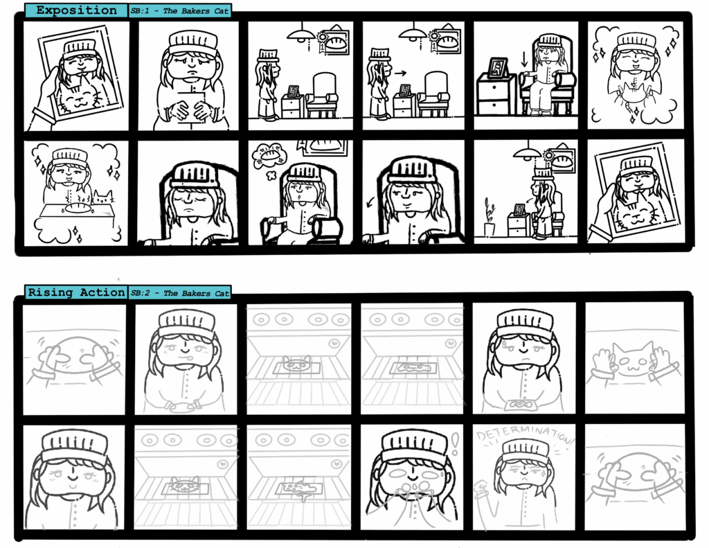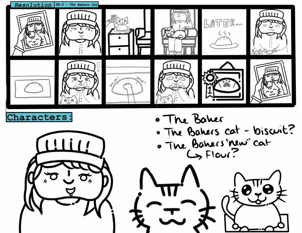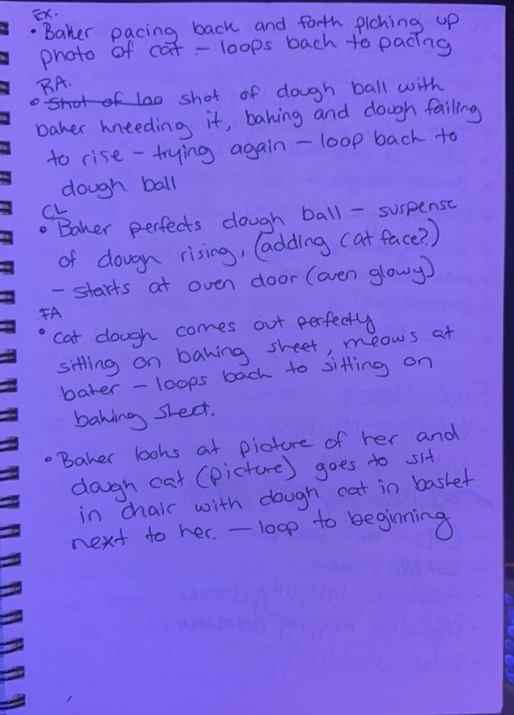 For my looping animation project, I wanted to create a unique narrative about a baker who had recently lost her feline companion.