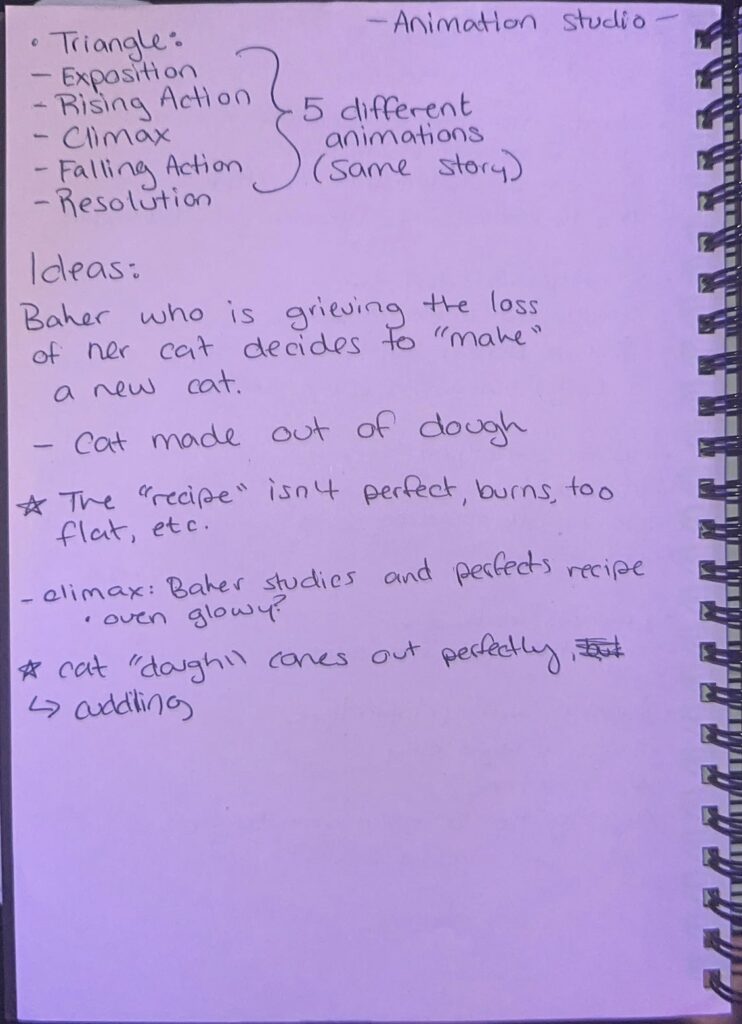 Starting out with an idea of how I wanted to utilize my concept I right away went into Procreate and created a really messy storyboard based on what I intended to be the first loop, the exposition. Below I’ve also attached my notes on ideas, and the 5 steps I needed to cover.